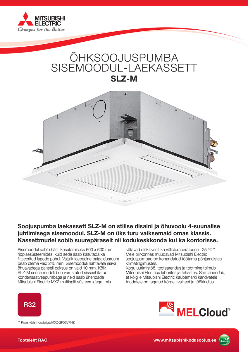 Sisemooduli nähtavale jääva õhuavadega paneeli paksust on võrreldes eelmise mudeliga vähendatud 10 mm-ni. Kõik SLZ-M seeria mudelid on varustatud sisseehitatud kondensaatveepumbaga. SLZ seeria laekassetti saab ühendada Mitsubishi Electricu Multisplit soojuspumbasüsteemiga, mis töötab kütterežiimis välistemperatuuril kuni -25 °C (vaid koos mudeliga MXZ-2F53VFHZ).